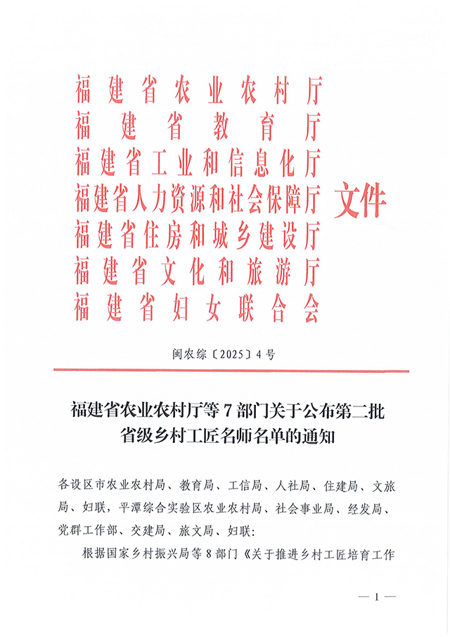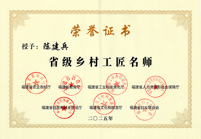 2025年1月,福建省农业农村厅会同省教育厅、省工业和信息化厅、省人力资源和社会保障厅、省住房和城乡建设厅、省文化和旅游厅、省妇女联合会等部门经过层层遴选认定的第二批“省级乡村工匠名师”名单正式公布,国家级非物质文化遗产、厦门老字号“妙吉祥”传承人陈建兵名列其中。